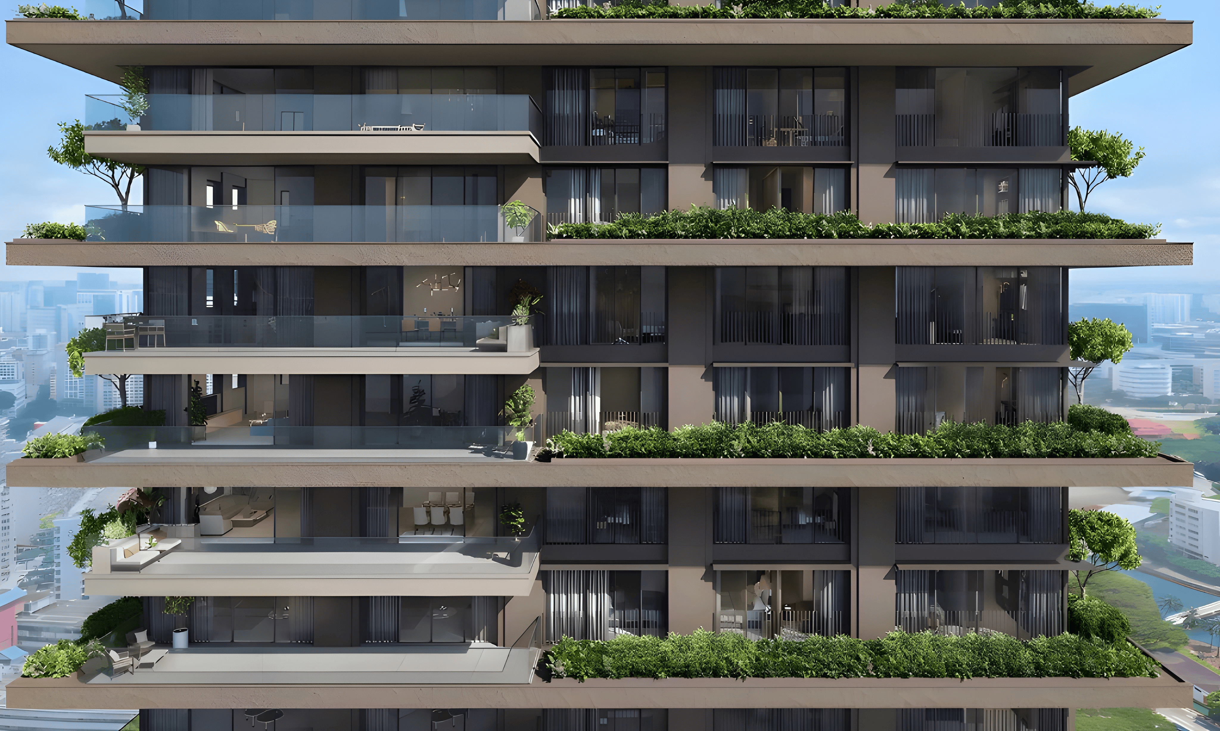 Inspired by the iconic Golden Mile Complex, Aurea draws from its legacy through the use of distinctive architectural, the most notable of which the distinctive oculus windows, which have been carried over and reinterpreted for the modern age. The development introduces a modern elevated lobby that enhances the sense of arrival, setting a refined and welcoming tone. Shaped by vertical terraces, expansive sea-facing balconies, and lush sky gardens, Aurea presents a fresh vision of integrated urban living. Light-filled interiors and fluid corridors balance elegance with functionality, offering a tranquil retreat within the city. Designed by DP Architects, the carefully curated amenities—including infinity pools, spa facilities, a sky gym, and social spaces—are seamlessly woven into the development, creating a refined lifestyle where heritage, nature, and modern city living coexist.